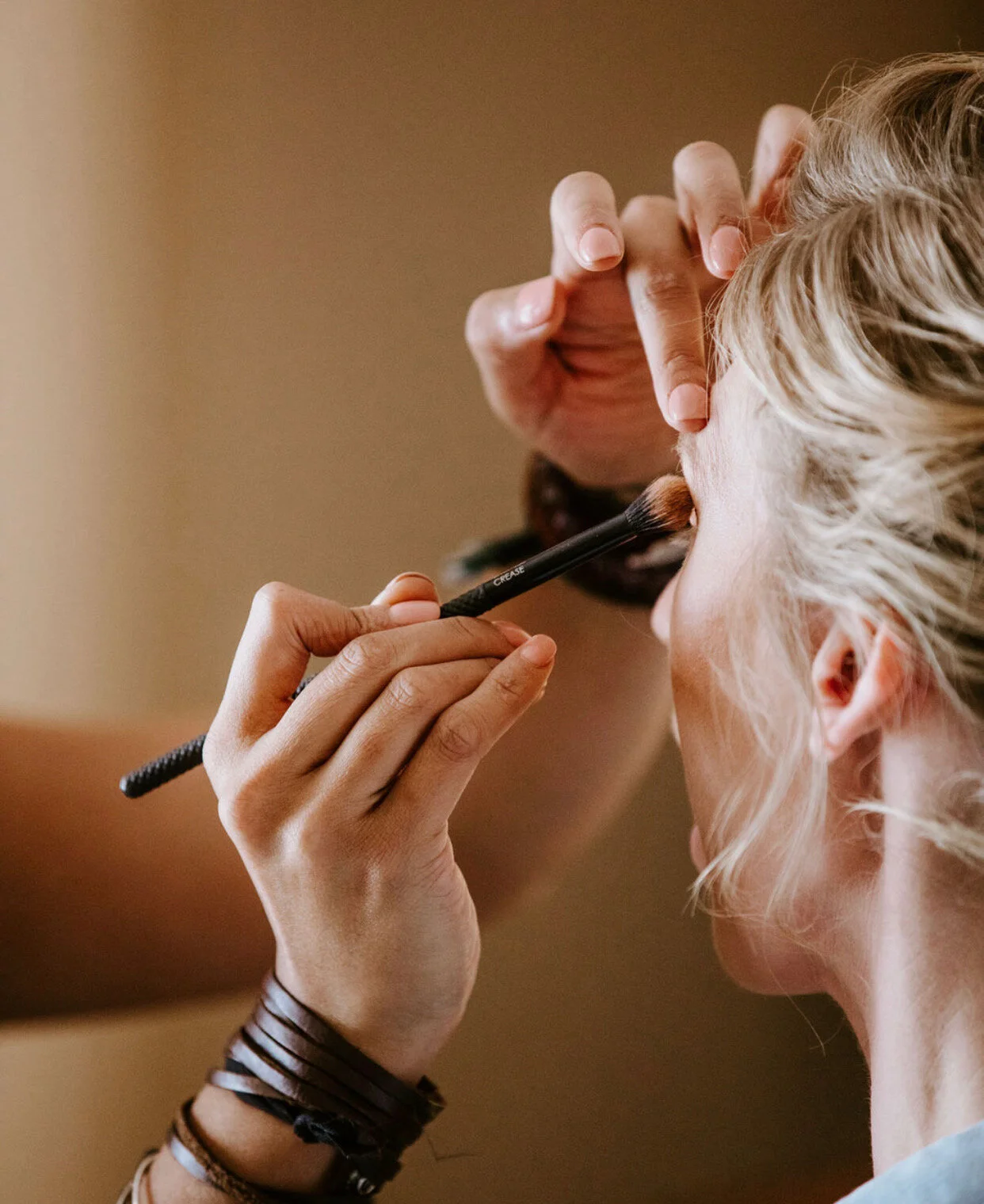 Bridal makeup is scheduled to allow for a calm, unhurried experience. Timing for bridal party members is coordinated in advance to ensure a seamless and organized morning.